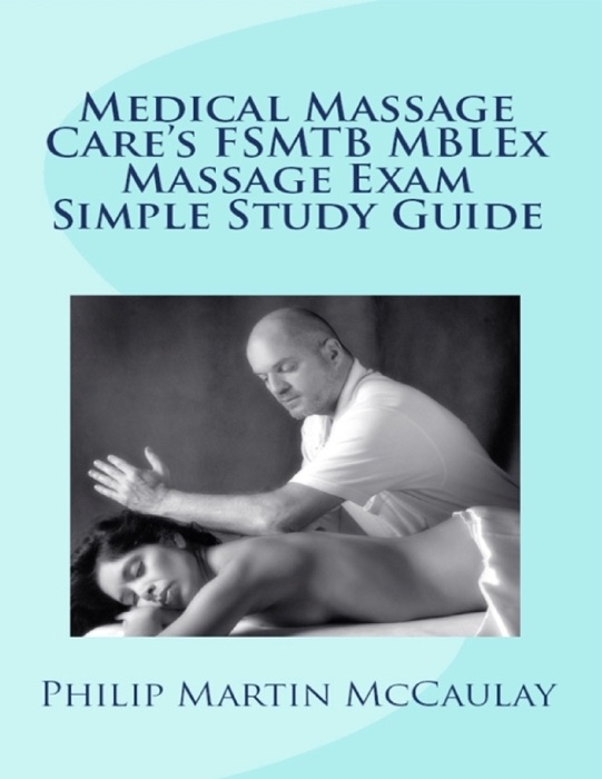 Medical Massage Care's FSMTB MBLEx Massage Exam Simple Study Guide outlines the knowledge needed to pass the FSMTB MBLEx massage and bodywork licensing exam. This guide summarizes the material that is most likely to appear on an exam; and provides tips for the exam-taking strategy. Topics include anatomy, kinesiology, pathology, areas of caution, effects, techniques, assessment, treatment, history, ethics, guidelines, and business. The author has sold thousands of study guides and practice exam books for the massage exams.